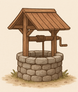 井穴は出る所。つまり井戸。井戸は木や金=石で出来ています。