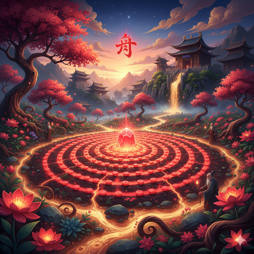 門の中に入ると、庭が広がり、花壇と同じ漢字の作りの膻中があり、奥には丸い建物玉堂が見えます。