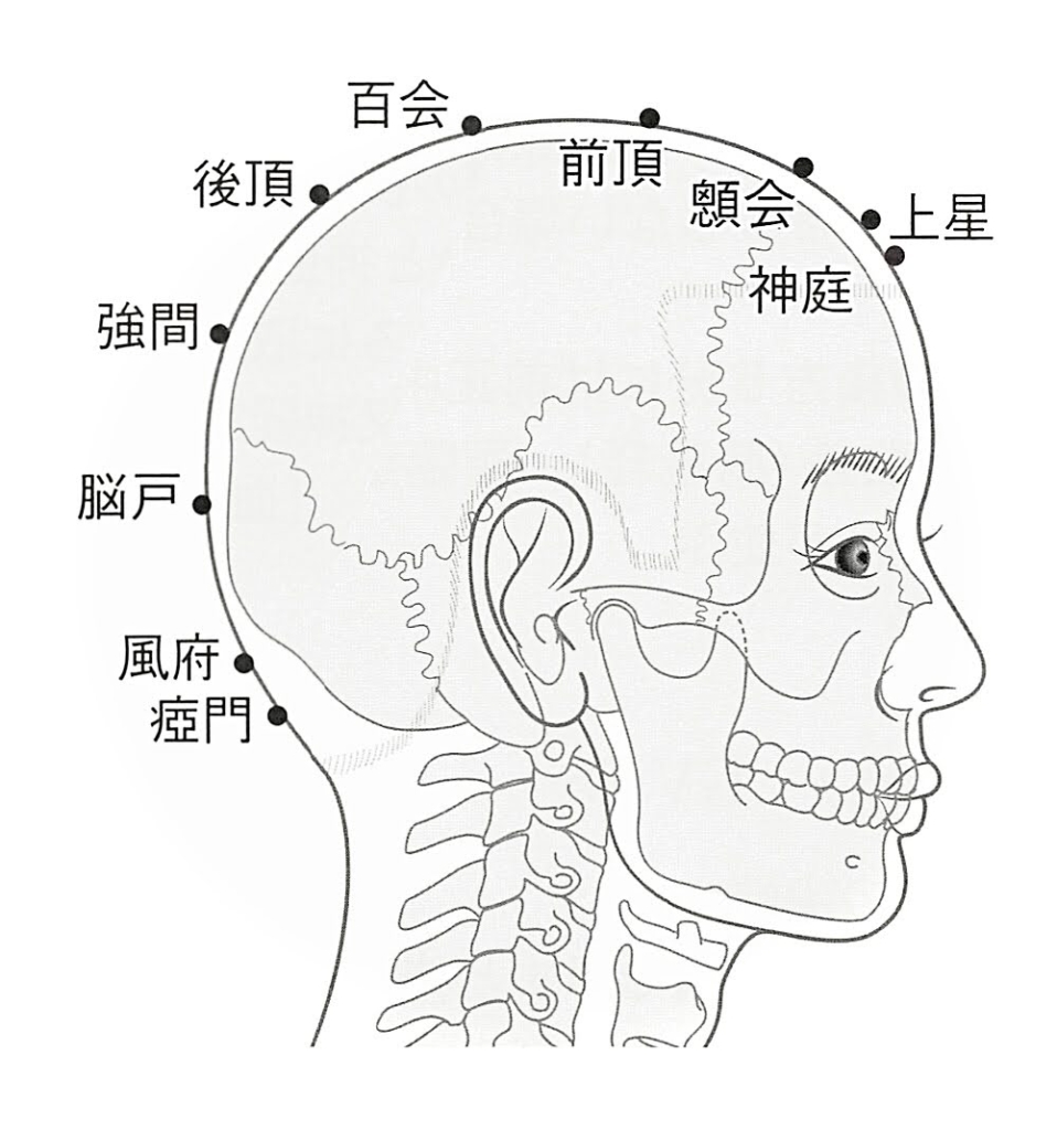 神経支配においても、百会から後ろが後頭部、百会より前が顔、と区分けができるので、覚えておくと役に立つかもしれません。