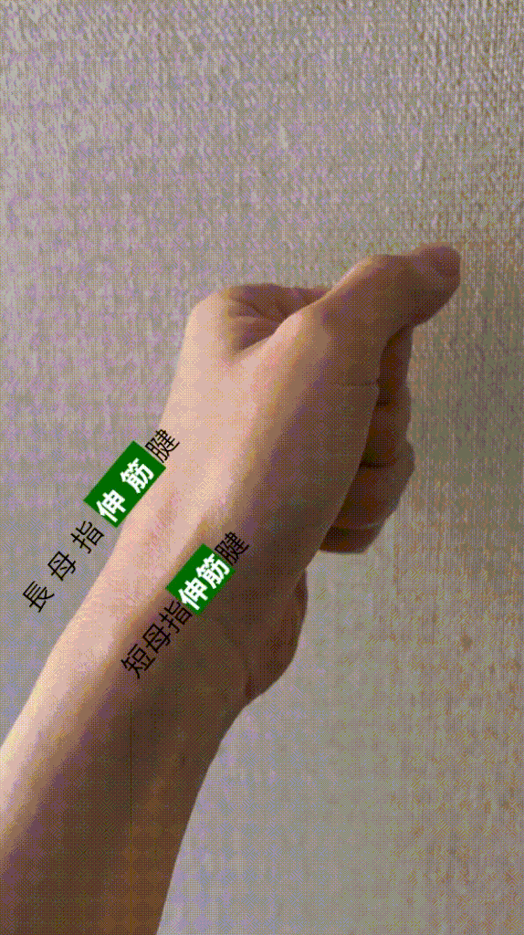 長母指外転筋腱は短母指伸筋腱の下にあり見えづらく、画像ではハッキリ示していないです。