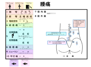 腰痛の診察は、この診察カードの項目に従い、進めていきます。