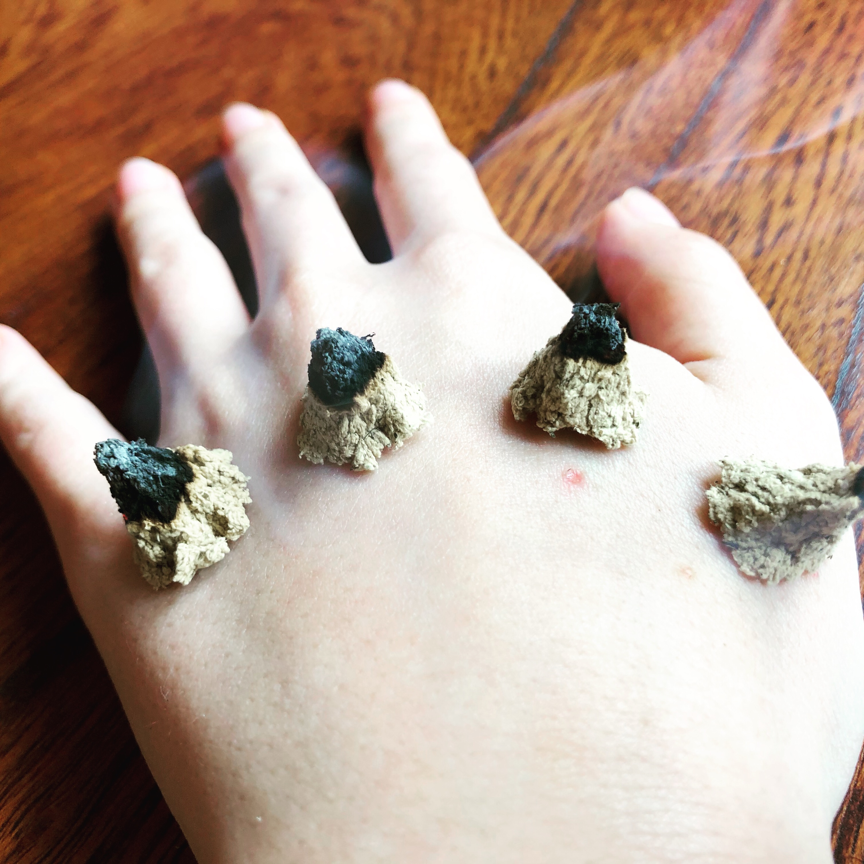 ツボもなんにもわかんないので、作った知熱灸を、インスタ映え重視に置いて燃やした私!