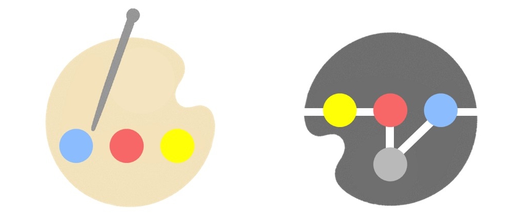 パレットの形を「はりきゅう―」「つぼ―」で太極図っぽく陰陽にして2つで一つです。