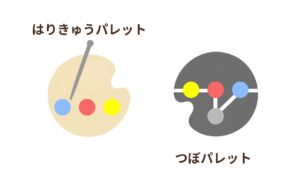 パレットの形を「はりきゅう―」「つぼ―」で太極図っぽく陰陽にして2つで一つです。